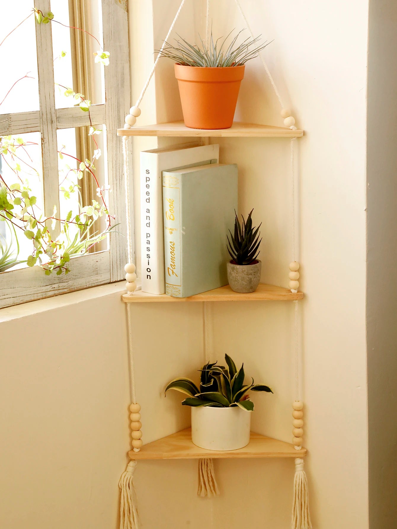 keywords: plant shelves,kids room shelf,wood shelves on wall,hanging shelf,boho home decoration